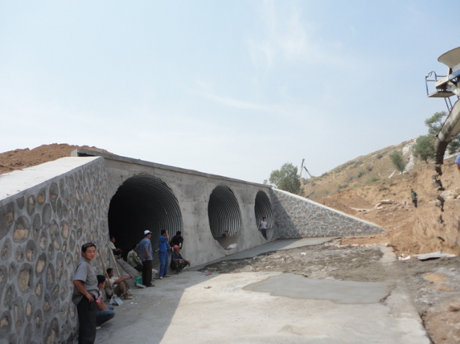 康临五标波纹管涵工程,直径3.3米,三道并排,每道涵长18米