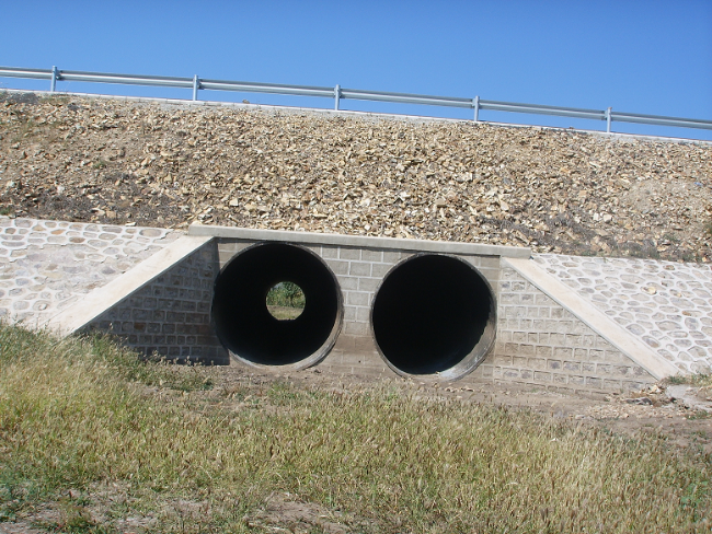 甘肃天定高速直径1.5米两道并排。填土6米,直交,外砌片石八字挡墙