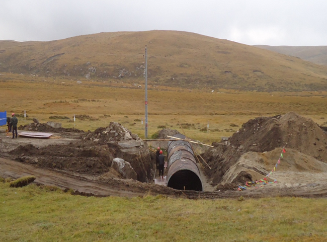 青海路桥一公司钢波纹管项目,直径2米,涵长60米